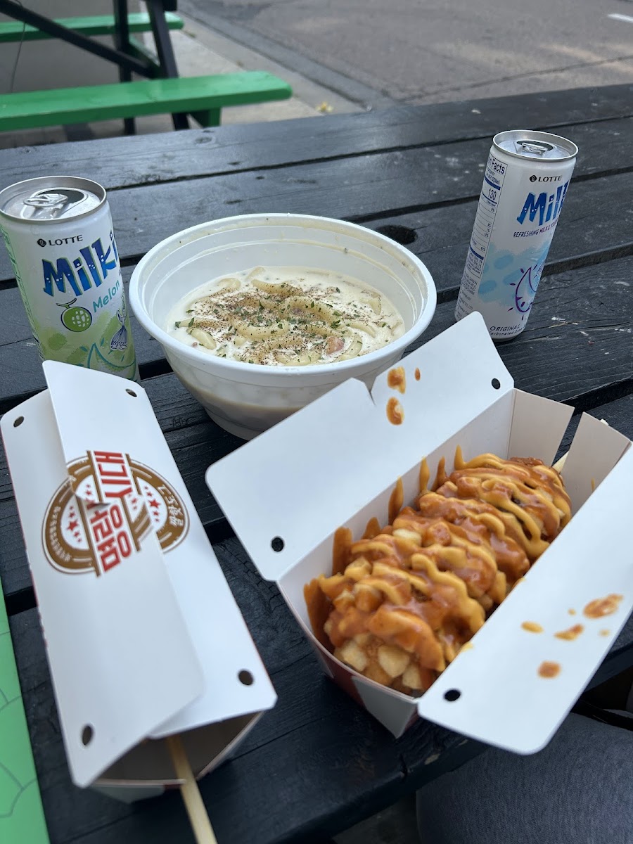 The staff contribute to a relaxed atmosphere, often described as friendly and low-pressure, which fits well with the quick-service format. It’s a spot that appeals to a wide crowd — from local students and workers wanting a fast, tasty lunch to families looking for an affordable treat or groups sharing several different hot dogs and tteokbokki combos.